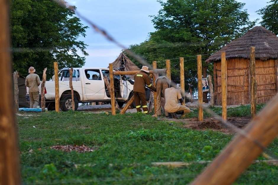 Raubtiersichere Kraals: Vier speziell konstruierte Viehgehege aus Gummipfählen, Zäunen und Netzabdeckungen schützen bereits über 100 Nutztiere von vier Begünstigten in den Gemeinden Morutsha, Quqao und Katamaga.